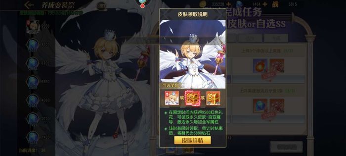 前6阶段的奖励都是钻石,而第七阶段的奖励为皮肤,当然追求强度党的小伙伴们也可以不选择皮肤,可以换取一个自选ss角色,总的来说看大家的个人喜爱,个人推荐选择皮肤更好一点,毕竟后期基本上都是全角色,皮肤后续不会有其他的获取渠道。