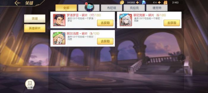 如果还是没有看到自己的ss角色,那么大概率是我们抽到的并不是整卡,而且碎片。这里我们点击下面的英雄碎片按钮,可以看到就有着ss伙伴的碎片数量介绍了,需要大家集齐120就可以获取对应的ss伙伴。