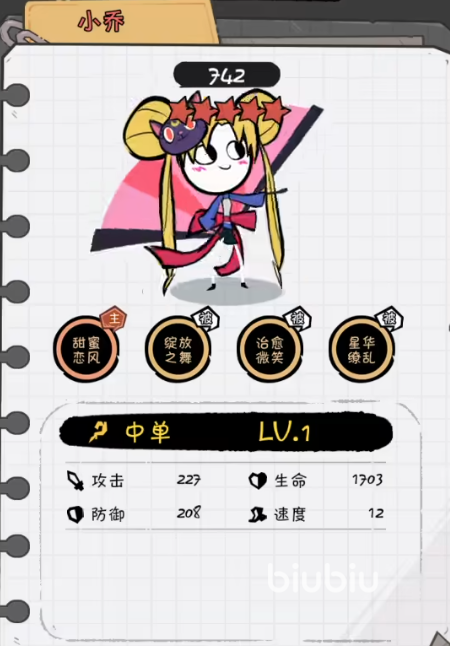 这个能力可以让我方的主力输出基本上可以不用害怕对方的控制,直接造成输出,从而造成大量的伤害,哪怕只有一个回合也可以创造极大的优势。小乔也是一名辅助类型的角色,这位角色的定位应该是BUFF和DEBUFF手。首先小乔的大招是对敌方三个单位造成300%伤害,并且有40%的几率眩晕。觉醒后变为对全体单位造成300%外加40%眩晕。