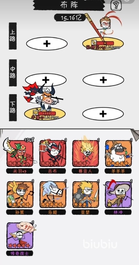 吕布,这是团队的副c,自带平a群攻效果,伤害出色还有决斗加成,能够对敌方单体敌人以及群体单位都有着很好的针对性。放在本阵容当中,基本上是为了弥补猴子在前期装备不足,在后期可以换成其他辅助或者将吕布进行着重培养。