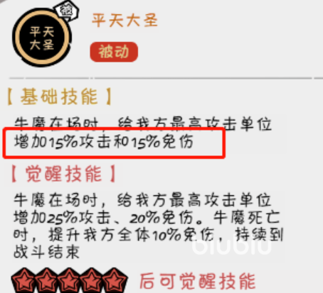 主C推荐使用马可波罗,将你所能拿到的万能碎片都给到他,阵型方面前排用马可波罗,后排用牛魔,其它的角色随便摆一摆就行了。牛魔被誉为“平天大圣”,只要他在场就可以给在场的所有己方单位提供15%的攻击和免伤增益。觉醒后更是可以给己方最高攻击的单位提供25%攻击20%免伤,而且在牛魔阵亡后也可以继续提供全体10%的免伤。有了牛魔在后面提供支援,这样马可波罗不仅伤害高,也有足够的坦度。