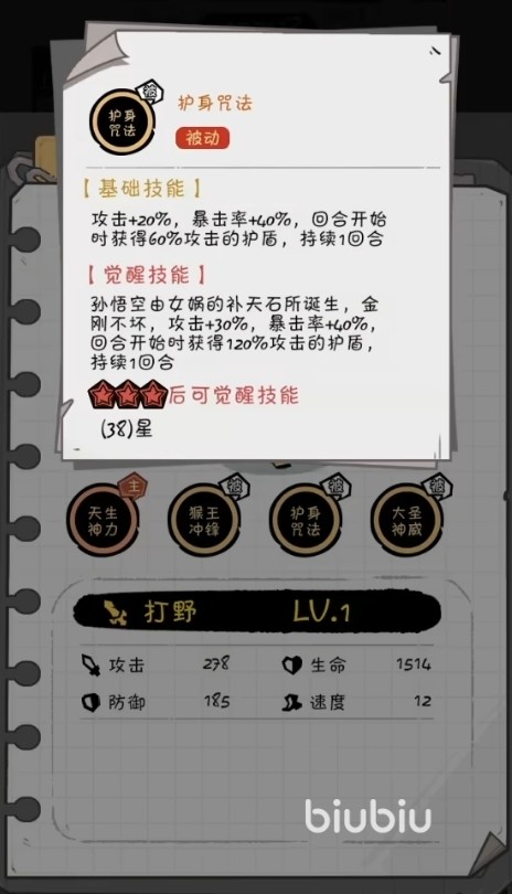 主动技能方面,作为天生神力一拳一个小朋友的角色,针对敌方后排造成高额伤害。并对命中的所有角色施加一个不可被驱散持续时间三回合的标记,后续我们猴子打带有标记的目标会有额外百分比例的伤害加成。通常情况下,状态良好的时候,一个技能就能将对面后排全部秒掉。就算秒不掉,标记加持之下的猴子也能发挥出更加不错的伤害,对Boss关卡以及精英副本非常好用。