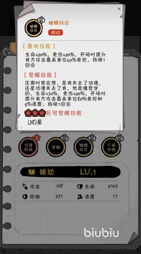 在实战当中,庄周在高冷难本下的环境表现是最为突出的。可以凭借自身较为优秀的坦度以及回合前的自我回血机制保证其整身的状态为我方团队其他角色吸引火力,时被动主动加持之下的我方主c也可以完全无视对面的控制效果,能够最大限度的发挥主c伤害的完全实力。唯一的缺点可能就是并没有多少对于攻击属性加成的技能,因此在阵容搭配方面更加推荐搭配了一些本身就很不错的输出角色。