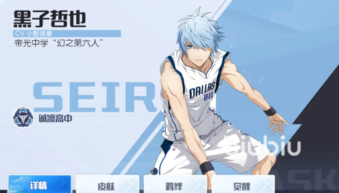 黑子哲也是原作中主角,他的必杀技“误导”可以在非持球的状态下,利用自身存在感薄弱的特点和视线误导的技巧,在对手眼中形成短暂消失的效果,从而可以进行后续的传球、卡位等,合理运用能改变球场走向,他的“加速传球”会提前做好要球的准备,并在接到球的瞬间,用加速传球的动作,把球瞬间传递给队友,他的“前突抢断”能从远处快速突进,将对手的球给拍飞,他的“闪影截球”会在面对对手的传球时,飞身瞬移过去直接把球给截断,他的“预判捡球”会靠着自己强大的预判能力,提早进行捡球。