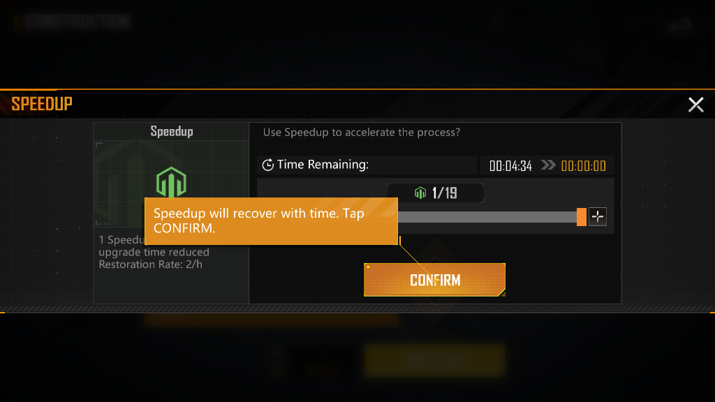 (1)加速是一个“加速”项目。可以加快援建速度,减少建筑施工时间。加速将随着时间的推移而恢复。