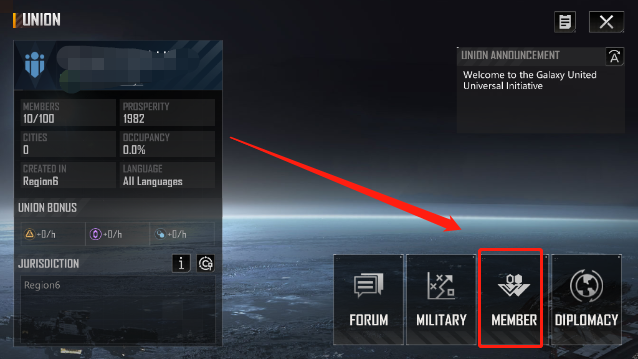 1、首先进入到游戏的主页面,点击屏幕的右下角的的联盟功能,然后点击成员管理系统“MEMBER”,小编会在图中为大家标注出来。