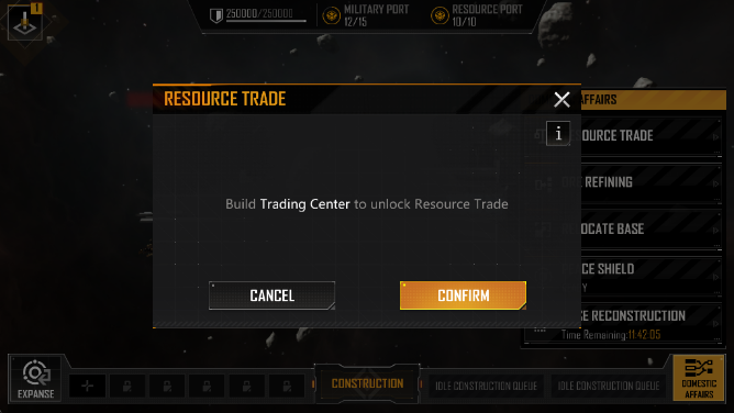 1、打造交易中心才能开启资源交易,一级交易中心需要解锁资源交易。提供金属、晶体和氘交换。升级交易中心,降低交易成本。