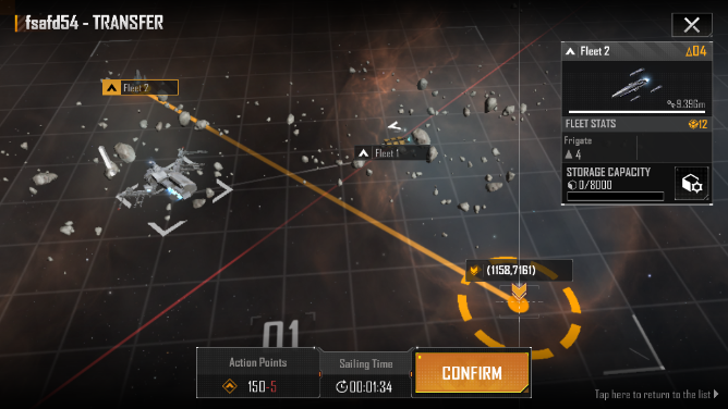 1、移动:玩家可以使用“转移”命令将舰队移动到操作区域内的某个位置。
