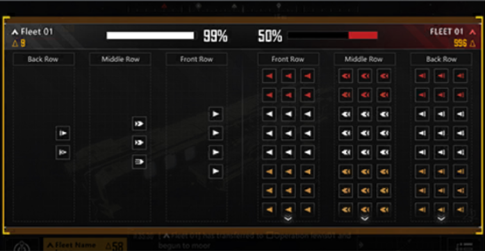2、根据它们在战斗中的角色,战斗中的舰船将自动排列在你编队的前排、中排或后排。舰队将集中攻击敌人前排的船只。当舰队被多个敌对舰队压制时,所有船只都会受到敌人的攻击。