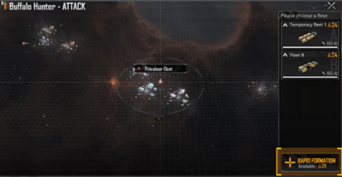 3、快速形成:使用“快速编队”命令,可以快速组建出临时的舰队。舰队在返回基地后将会自动解散,这个操作也是非常方便的。