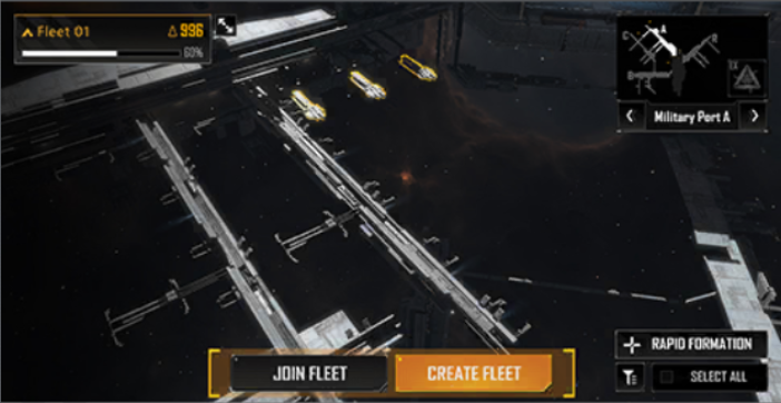 2、选择舰队:将停靠在港口的船舶添加到现有船队或将其组成新船队。当完全形成后,新组建的舰队将停靠在基地。