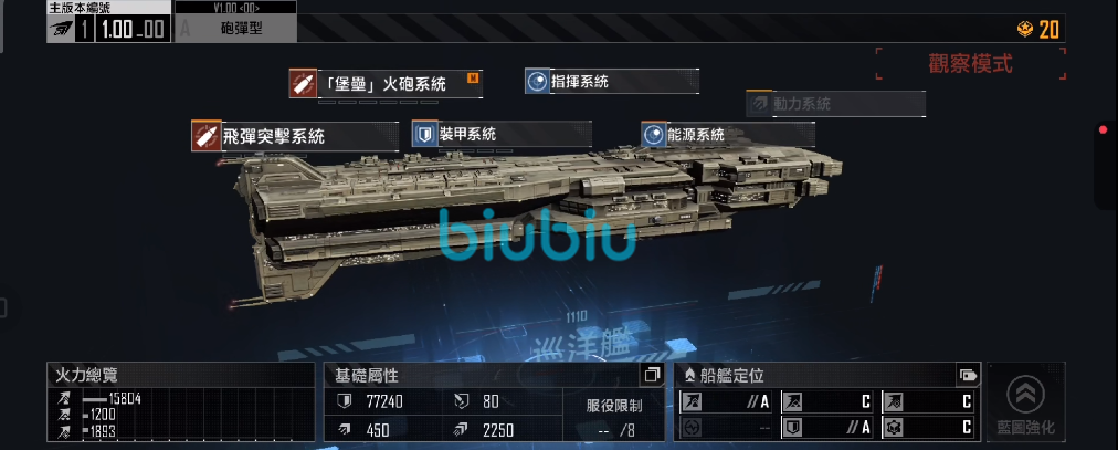这个是游戏中护甲最高的巡洋舰,综合性能的绝对第一,有自身火力,配备堡垒火炮系统,飞弹突击系统,有前排能力自身装甲非常的好,拿到手以后改造上面只点护甲,强度会非常可怕。缺点是这个战舰造价比较高,需要拥有一定的资源才可以生产,而且要配备好的飞机,强度提升上面所需要的要素比较多。