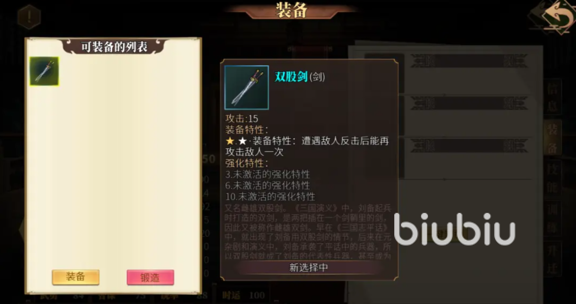 强化装备能明显提升角色属性,比方说双股剑,它能在遭遇敌人反击后再重新攻击敌人一次,而我们对其强化不仅能提升反击时的伤害,还能让格挡率增加,反击敌人时产生连击的概率提升,所以强化后的装备,往往能打出意想不到的关键作用,有资源一定要优先强化主力角色的装备武器。
