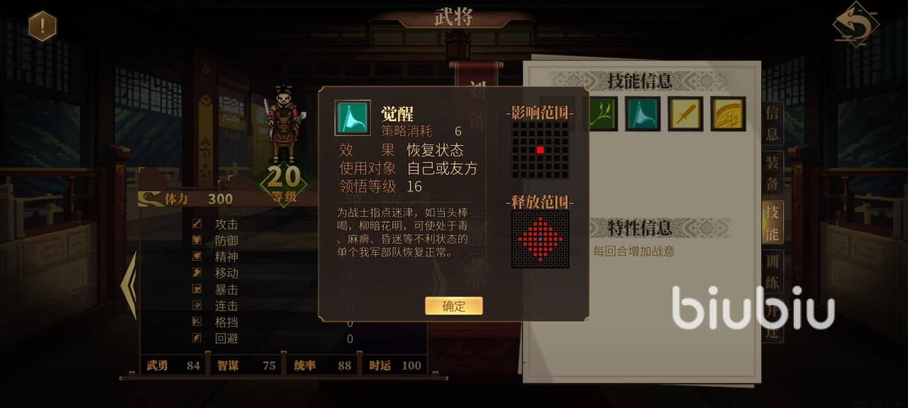 觉醒的效果是对自身或者是友方释放,能够将中毒、麻痹、昏迷等不利状态的单个我军部队恢复正常,需要16级才能够领悟。振奋,需要12级领悟,对自己或者是友方目标释放,可暂时提升我方单个部队的攻击力,如果使用的目标是文官,那么提升的是精神力。集中同样是对自己或友方释放,能带来暴击提升效果,可对敌方发动全力一击。