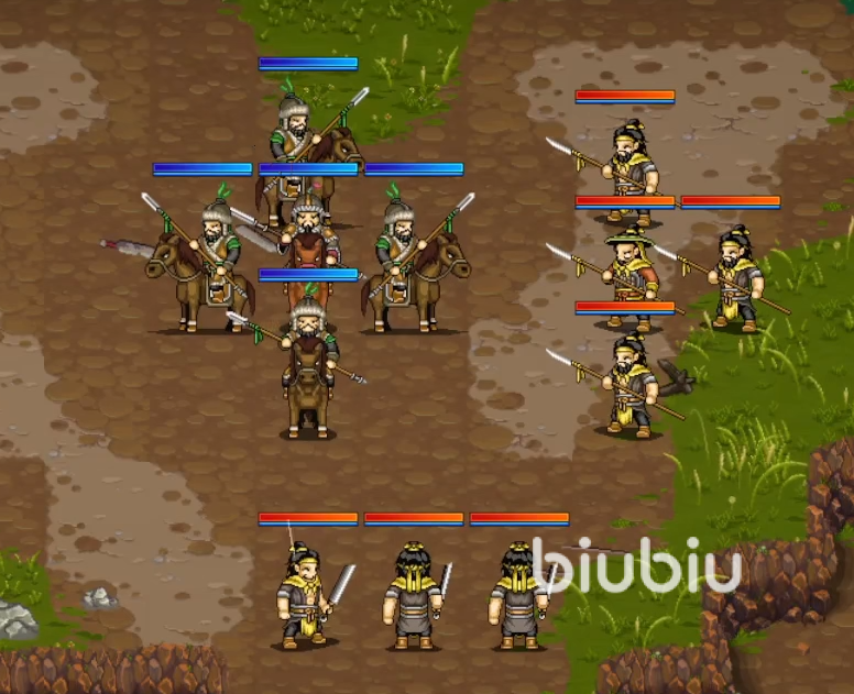 游戏在教学关卡之后的难度就会增加很多。玩家们需要好好利用所获取到的金币来购买装备来强化自身。同时在作战的时候尽量让主战角色站在前面,辅助或者拥有治疗能力的武将尽量在靠后的位置比较好。
