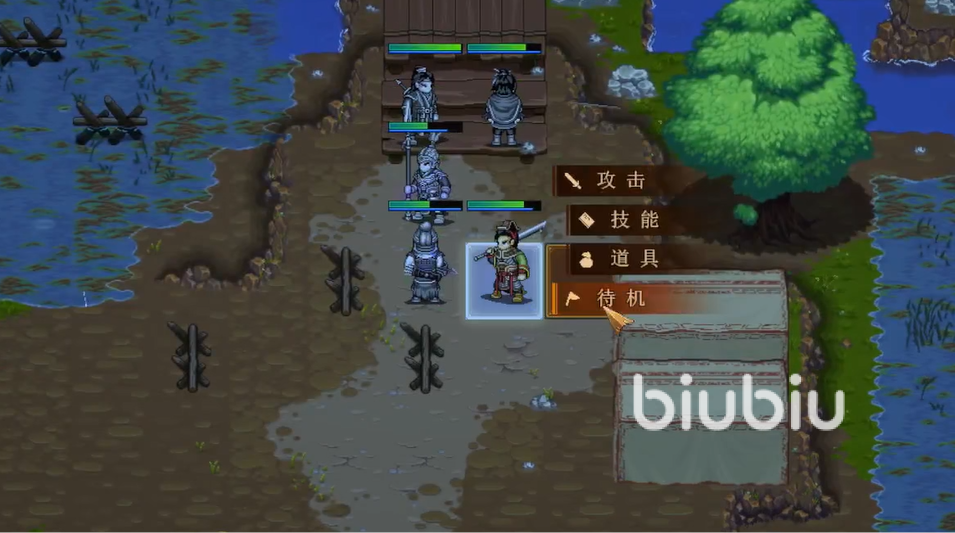 由于这里大多数都是河边,所以不建议大家用火系技能,很容易被灭掉,打不出伤害。这里建议先攻击右边的敌人,然后用骑兵攻击上面的敌人,就能有效分工,避免被分批消灭。大家成功消灭完这批敌人后就要过桥了,建议先派遣盾兵或者骑兵上前,方便吸收伤害。