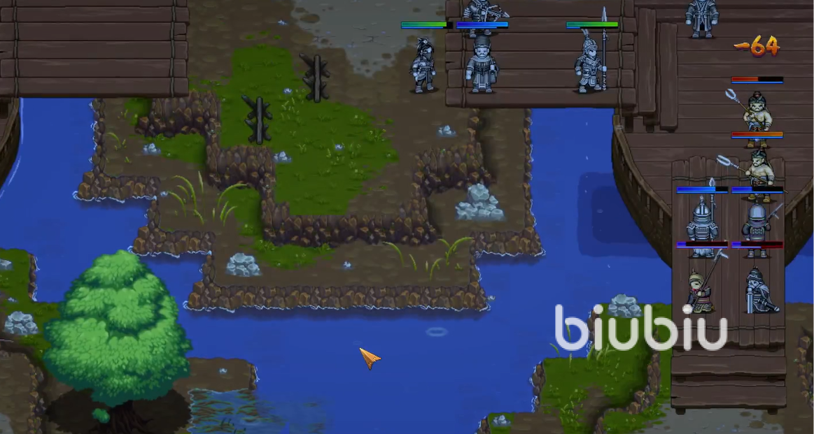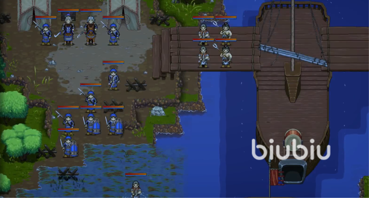 由于到了后边还要过河,所以可以将骑兵派遣至河滩附近过去,这样就不用担心无法过去。接着一些陆兵就往船上右边陆地走,直接分为两批人进行会师。之后两股人马分别包抄至中间的敌军中央,最终就可以解决所有对手了!