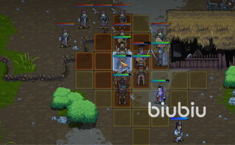 第一回合很简单,可以先派遣骑兵上前冲杀,然后远程角色再用法术技能攻击就行。不过记得要让盾兵或者骑兵去抗伤害,不然辅助或者远程很容易死,没技能的话就可以用普攻输出。全部角色输出完毕后,一两个回合就能拿下这些先遣军。