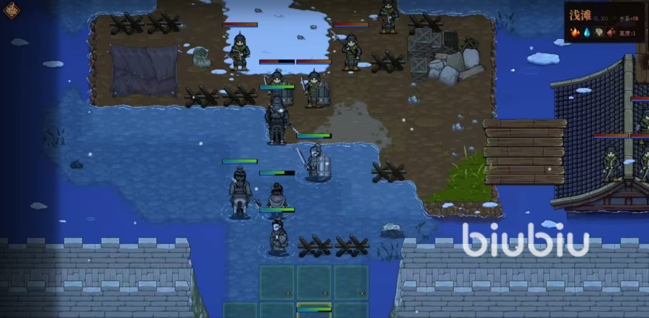 并且大家也可以携带各个药品或者是更换装备,但是每个人都会有着独立的仓库,大家需要携带道具才能够进行使用。那么首先在开局的时候,敌人可能会遭到眩晕,所以这个时候就建议大家尽快去将其打残并进行解决。这样就可以让大家去更好的进行游玩,而且大家需要去给刘备进行加血,这样可以确保他的生存。并且大家可以利用地形和角色的技能去合理的调整正位,这样也可以逐步的去消灭敌人。