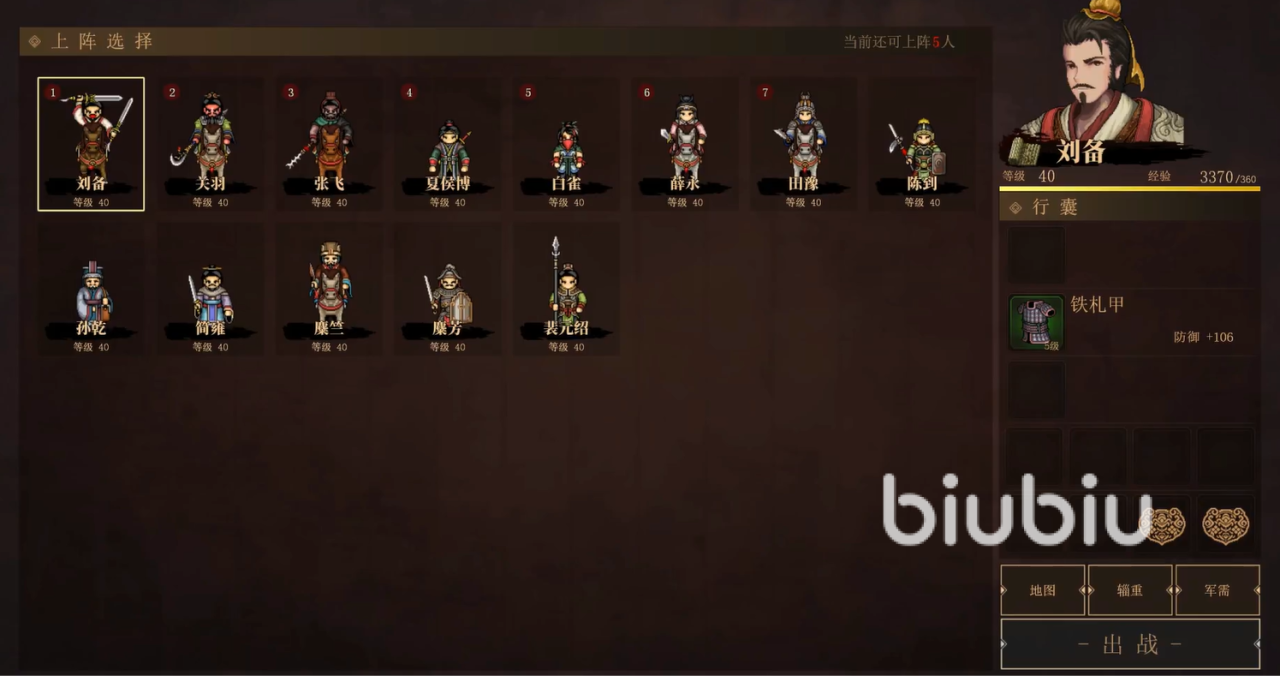 这里推荐大家采用刘备+关羽+张飞+夏侯博+白雀+薛永+田豫+陈到的组合,因为这样就可以互相弥补。不仅拥有超强的进攻实力,并且防御力以及生存能力同样在线,再搭配上可以远程输出的射手或者法术之后,就可以让胜率大大提升了。