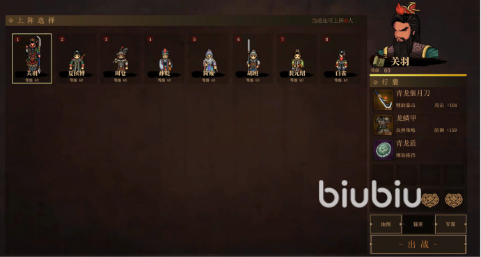 由于这个关卡一共可以上阵八个人,所以大家可以灵活组合;一般来说建议2护盾2骑兵2射手2法师2辅助的搭配,这样就可造成更多伤害,并且持续生存能力更强。建议用关羽打头阵,因为它的冲锋能力更强,可进可退!其他的就根据自己所有来组合,没用问题。