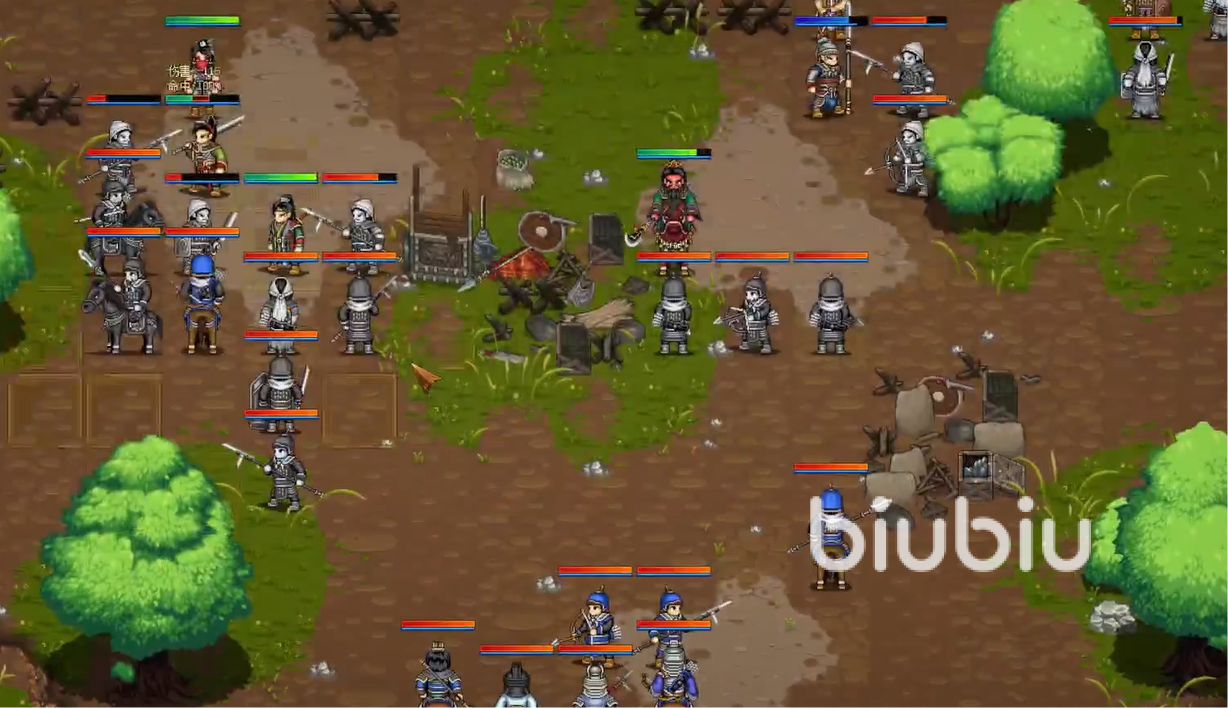 到了接近尾声时,敌军会一股脑地从左下角出现,所以大家处理完右边的敌军之后,就可以将所有人都招呼至左下角这边。之后还是老样子,骑兵以及盾兵、战士放在前面,刺客以及射手放在后面。最后打车轮战,将他们的血量全部消耗完就行。