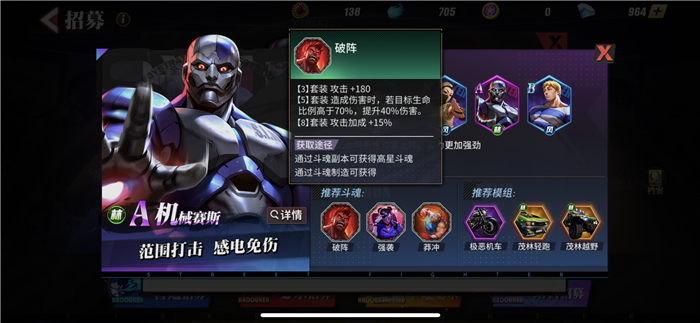由于赛斯的攻击速度高,伤害力高所以在竞技模式下建议搭配破阵斗魂,破阵斗魂除了可以提高基础攻击力外,当集齐5件套装赛斯在造成敌人伤害时,若目标生命例高于70%则提升赛斯40%的伤害。