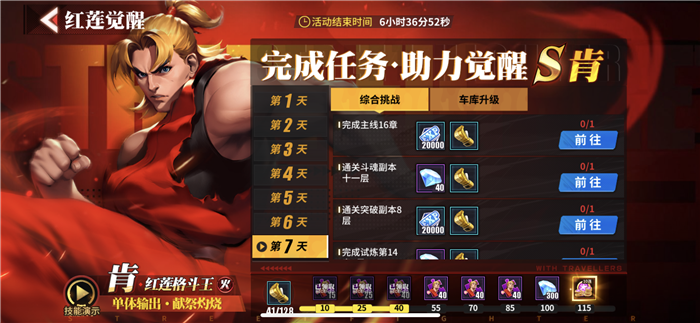 目前游戏有红莲觉醒任务,完成7天所有任务就能使A级肯觉醒为s级肯使他的战力大幅度提升呦。