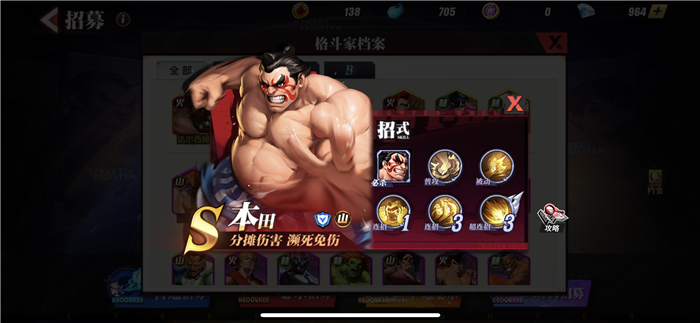 本田是为数不多的山系坦克型s级格斗家。技能具有眩晕效果,在保护队友的同时可以眩晕敌人为我方其他格斗家创造输出条件。如果玩家没有合适的坦克建议选择本田。