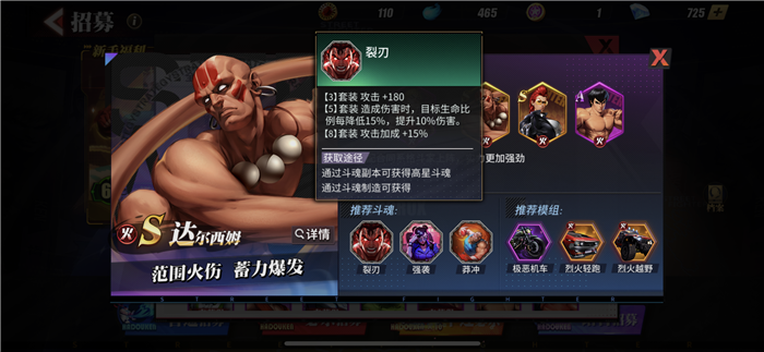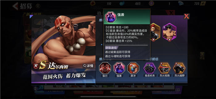 以上就是街霸对决达尔西姆带什么斗魂合适小攻略,想要提升攻击力和暴击率就可以佩戴裂刃和强袭斗魂呦。除了佩戴斗魂外提升斗魂星级也是不错的提高攻击力方法呦