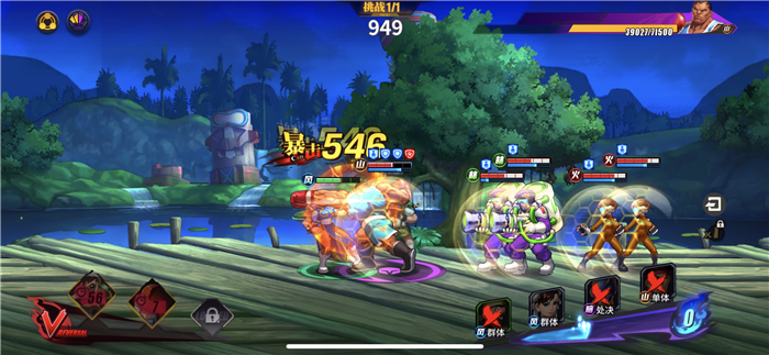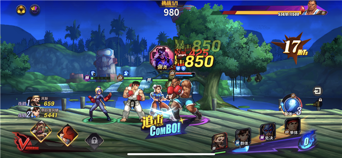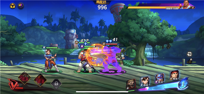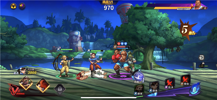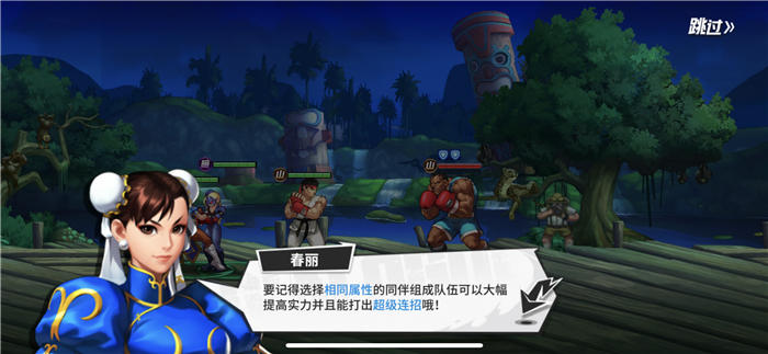 此次格斗需要使用指定的格斗家春丽和隆,其他空位可以随意上阵格斗家,建议上阵同属性的格斗家打出连招才能打败敌人。