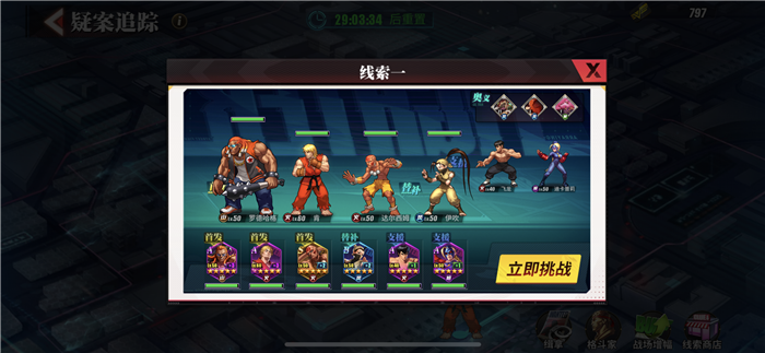 战斗中有几率获得敌人的线报,线报足够时可以号召其他格斗家共同减案件的真凶。疑案追踪没有次数限制只要玩家的格斗家还有血量可以战斗就可以多次进行挑战。