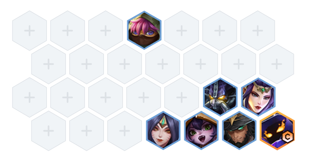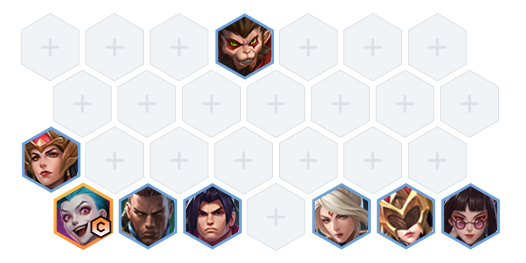 阵容组成:邪恶小法师、仙灵女巫、天雷引、命运之手、青丘灵狐、苍鸾、虚空行者。七人口成型,主C小法师。