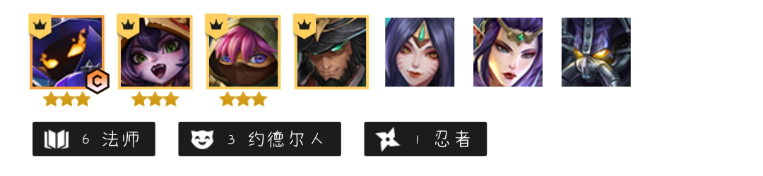 羁绊组成:六法师三约德尔人一忍者。