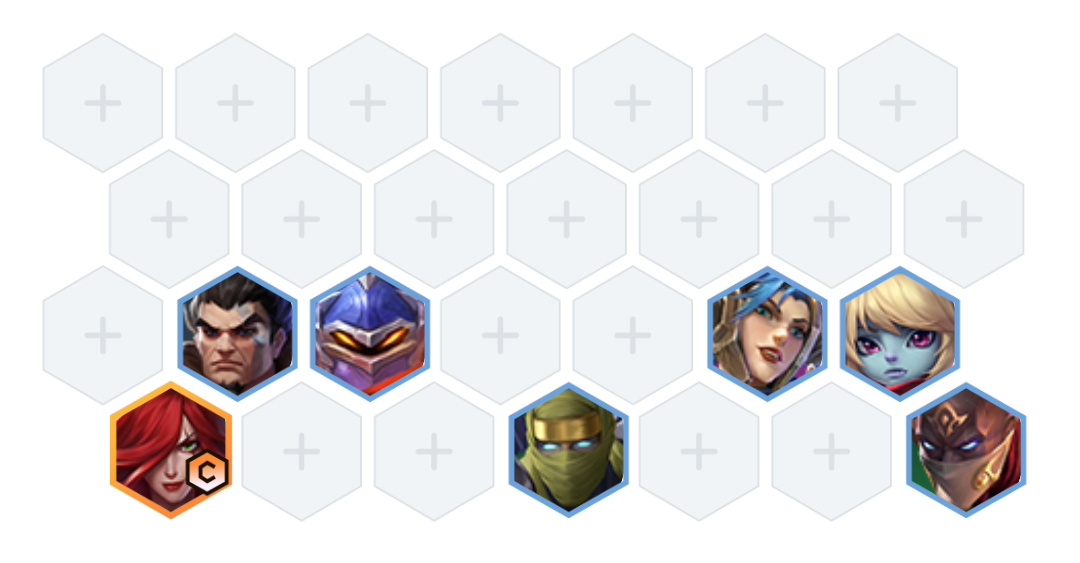 阵容组成:帝国之刃、影疾忍、海上幽灵、帝国之手、钢铁领主、冰川骑士、圣毅之锤。主C卡特,副C选择劫。