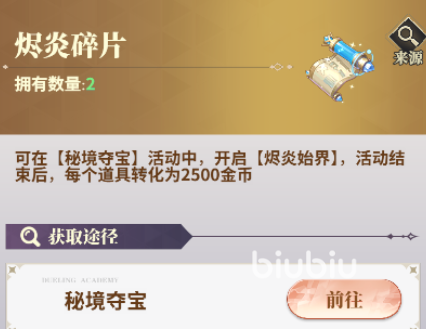所谓的秘境夺宝就是一个游戏里面一个提供不少奖励的活动。简单点来说就是需要玩家们前往秘境之中来进行探索,通过探索来获取到各种类型的物资奖励。从现阶段的情报来看,整个活动里面目前是分为两个地图,分别是烬炎和蓝晶,两个地图的样子和颜色就和它们表现的一样。