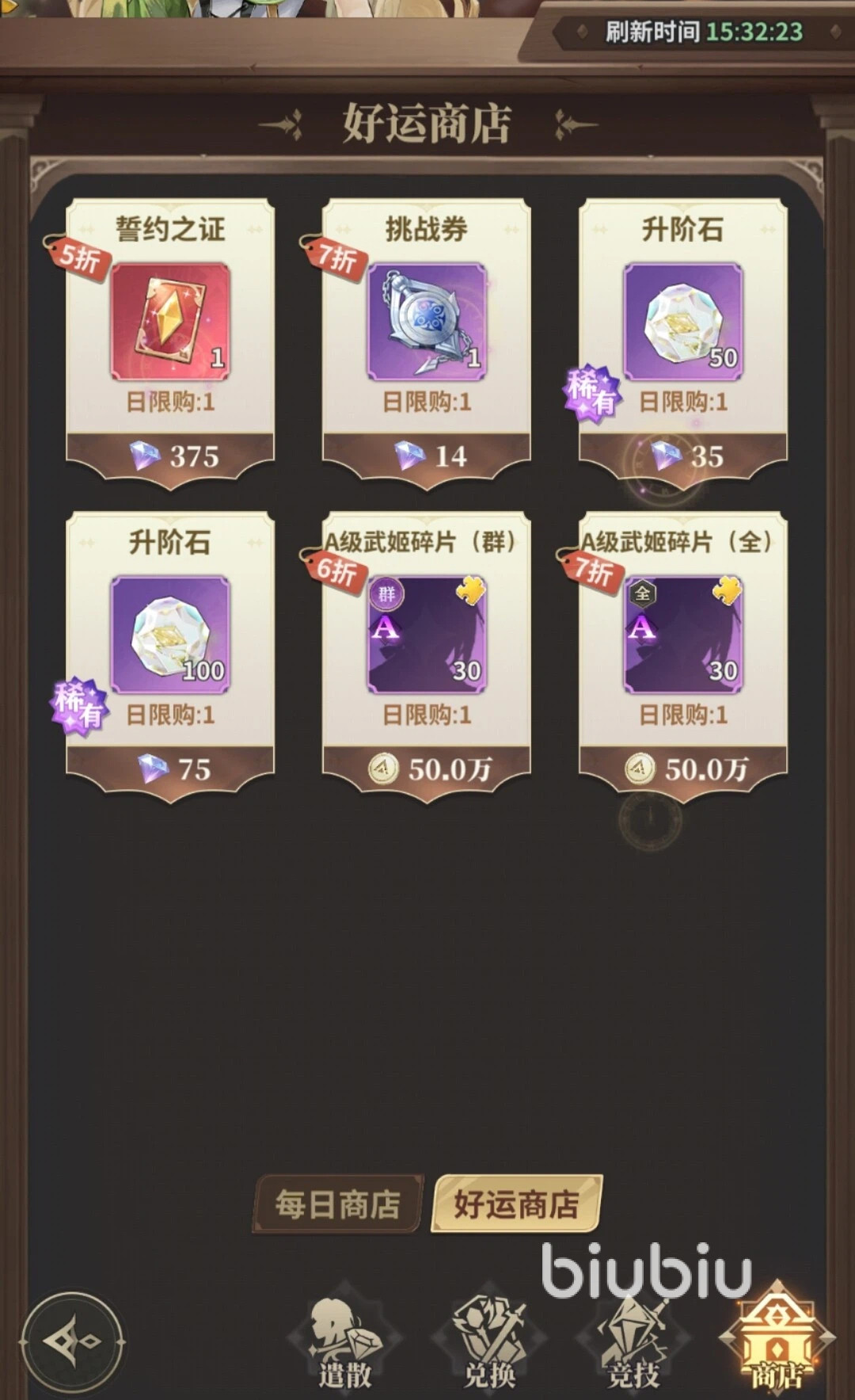 除了耐心刷开局,玩家还应该注意获取资源的优先级。比如在杂货铺购买的时候,应该首先选择升阶石、誓约之证和群星之证。因为升阶石用途非常广泛,武姬的等级提升和星级提升都需要用到它,抽取核心武姬或者对其进行升星的时候也要用到誓约之证、群星之证。如果在公会商店购买,则建议优先选择武姬天启石,因为它的获取方式比较少但很重要。