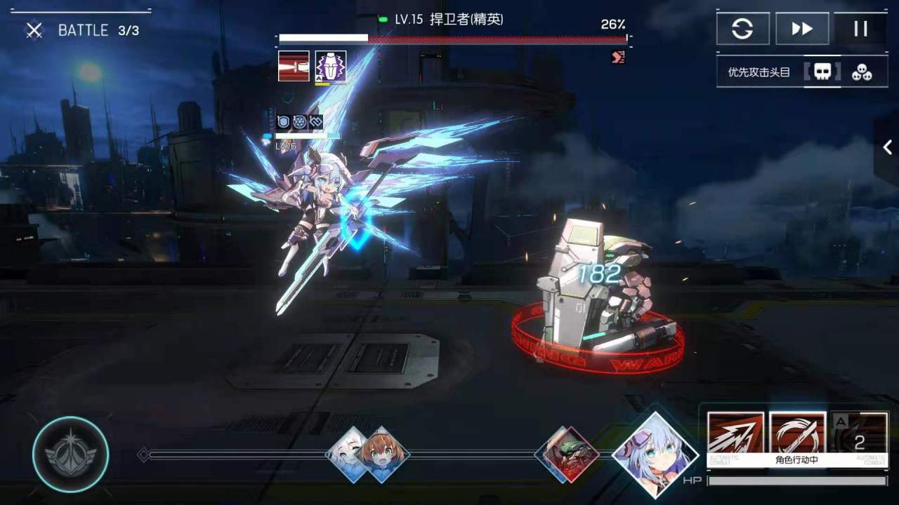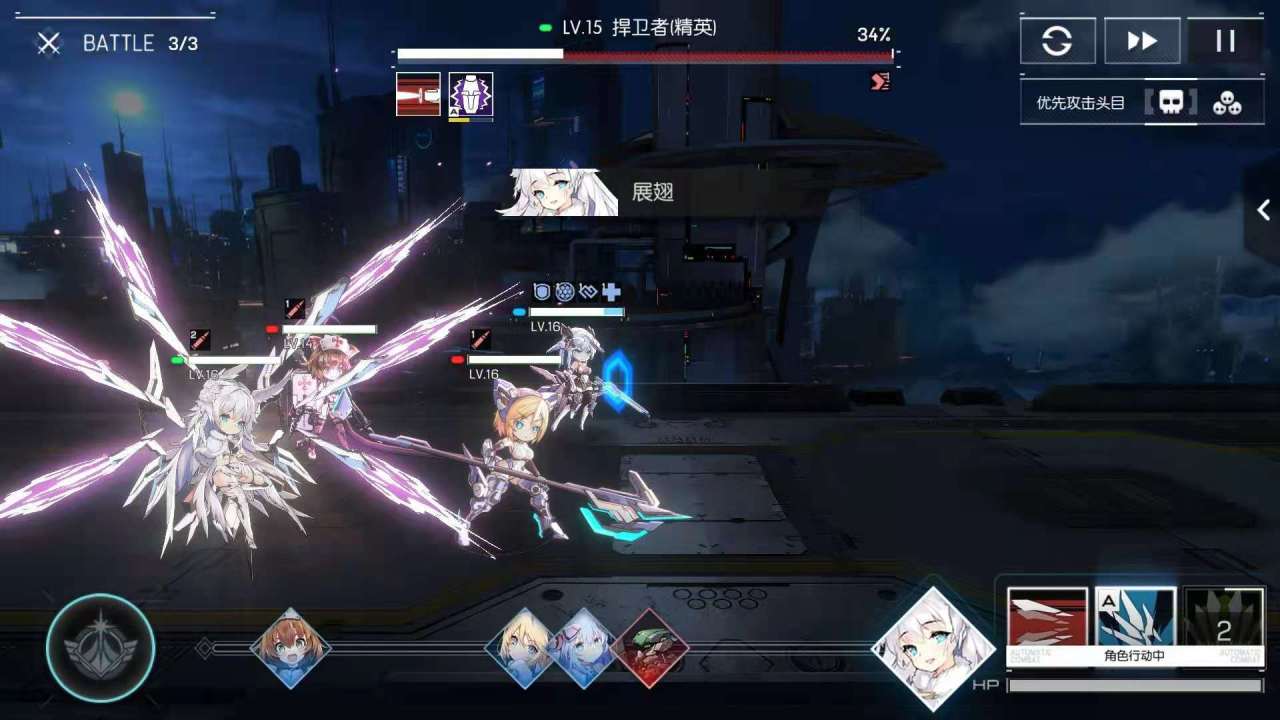 3技能:消耗70点能量值,群体攻击。快速切割战场,对对方全体造成伤害,并且获得自身攻击力提升,提升效果持续2回合 。有50%的几率对地方造成晕眩,效果持续1回合。