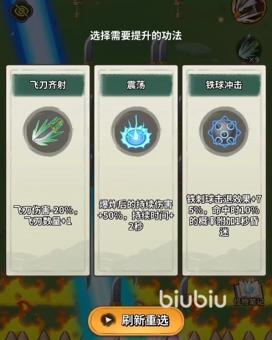 在秘籍的选择这块应注重伤害增加和飞刀数量,飞刀命中秘籍和飞刀弹幕就很合适,能够让大家快速的打出高额输出。