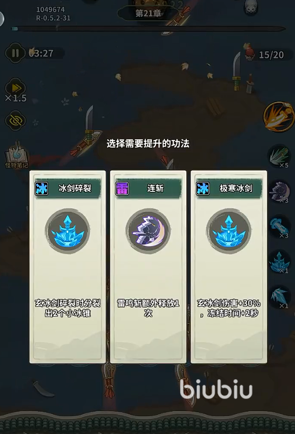 最后在秘籍选择上面,我们可以考虑一些能增加排山倒海持续时间和伤害的,比方说没击败一个怪物,增加0.9秒的持续时间,或者是伤害增加10%,牵引力增加20%等都非常不错,能保证排山倒海的技能释放时间和伤害。
