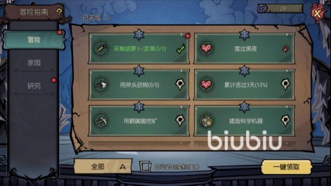 对于饥荒新家园冒险指南任务就详细介绍完了,对于其他任务而言,那是根据冒险家的冒险进度来慢慢解锁的,如果有一些特殊的任务的话,那么可以选择建立新的存档,这样就可以快速完成任务了。