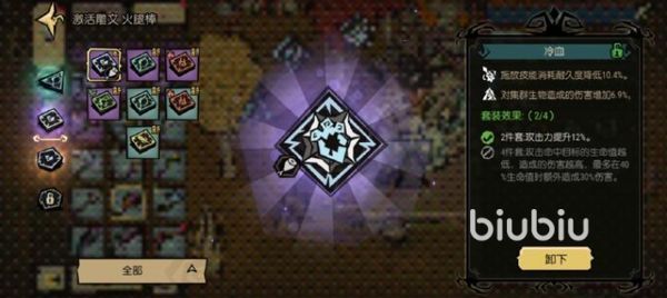 冷血套装可以让角色在释放技能时候所消耗的耐久度在原来的基础上降低10.4%,还能对在一起的生物造成的伤害提高6.9%。