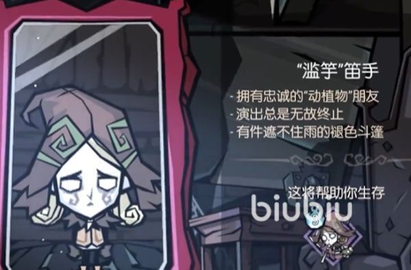 在该游戏中总共有三个职业,分别是拿着笛子的吹笛人,他在游戏中有着非常忠诚的动物和植物的朋友,身上穿了一件褪色的斗篷,总是遮不住外面的雨水,而且他在演奏笛子的时候,总会莫名其妙演出被终止掉。