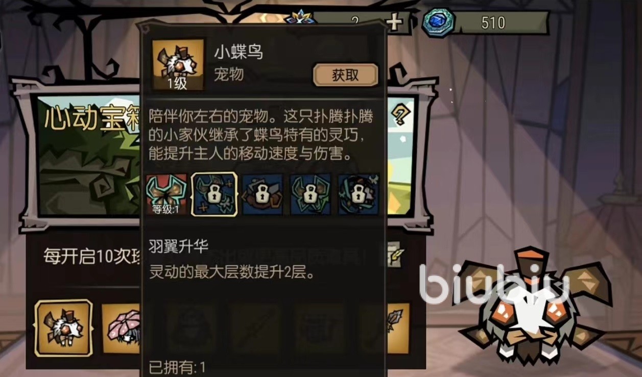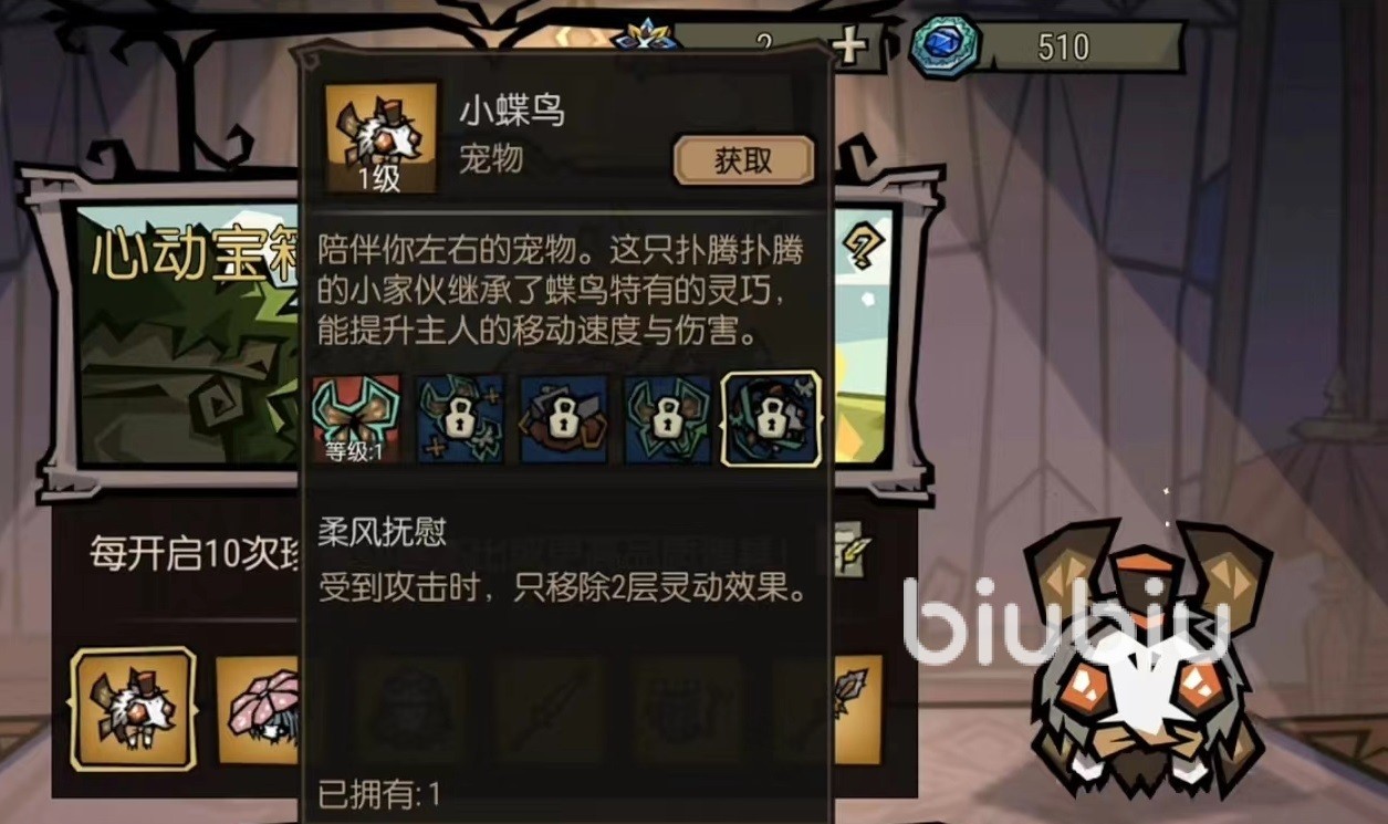 从目前设计情况来看,在饥荒新家园中宠物绝大多数还是偏向于简单,就是在使用方面没有太多技巧,加入到战斗中就能发挥出作用,而且绝大多数只是技能发挥作用,自己并不能参战,只有少数才可以加入到战斗中。但是小蝶鸟技能灵动双翅拥有着独特机制,先来看一下基本效果。普通攻击后获得一层灵动,持续8秒钟,最多能叠加到6层,受到攻击时会将所有灵动效果移除,同时获得移动速度和造成伤害方面的提升。