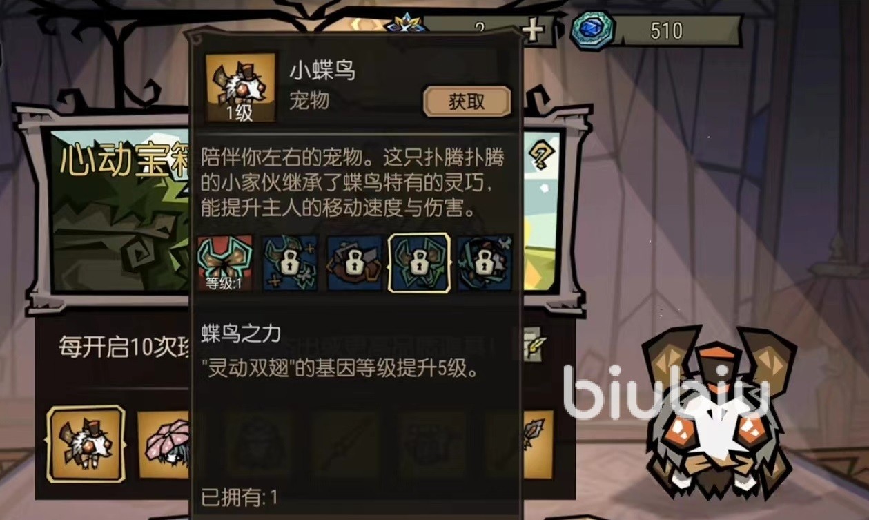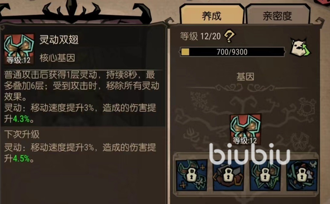 而且该宠物还有其他若干个被动提供加成,例如羽翼升华,使叠加层数提升到两层,还有蝶鸟之力,使基因等级提升5级,以及最后的柔风抚慰,是最关键效果,受到攻击时只移除两层。只有达到全部激活之后,该技能才能真正发挥出效果,因为只移除两层,保证了持续作战能力。但是要想达到真正目的,还需要很好的把控能力。那就是尽量保证整场战斗下来,身上都带有效果,这才是最佳方面,因为两层提升属性已经非常可观。