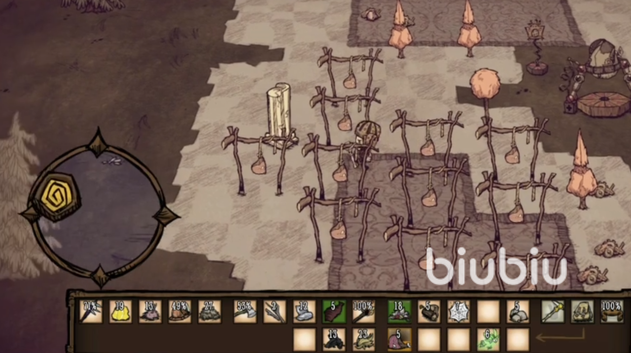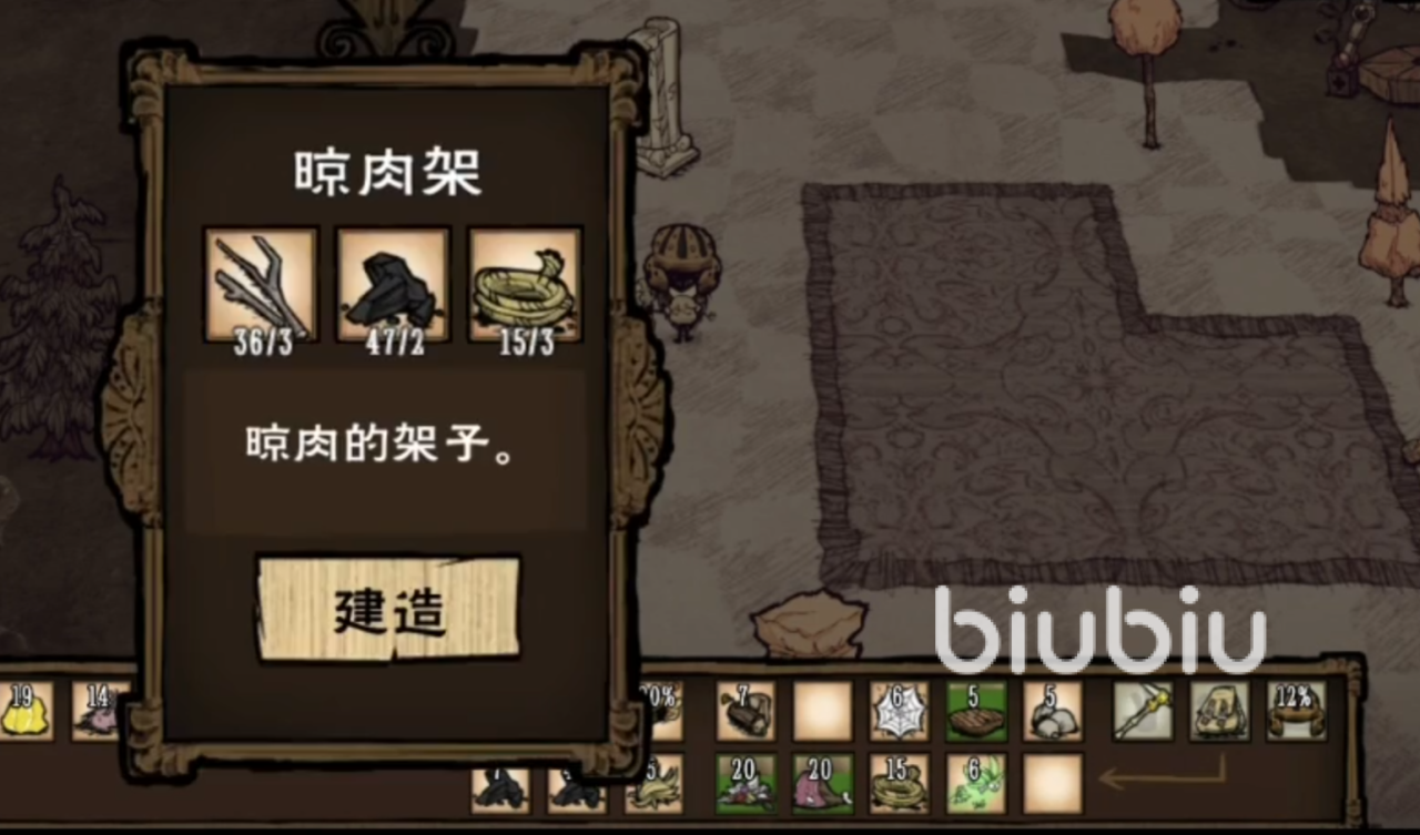 将肉收集好之后将它放在架子上,等待一段时间之后就能获取肉干,当然也可以用火烧之后再用锤子敲坏架子,这样就可以快速获取肉干了,这样的话花的精力比较多,不然直接等待时间,肉也会自然晒干。