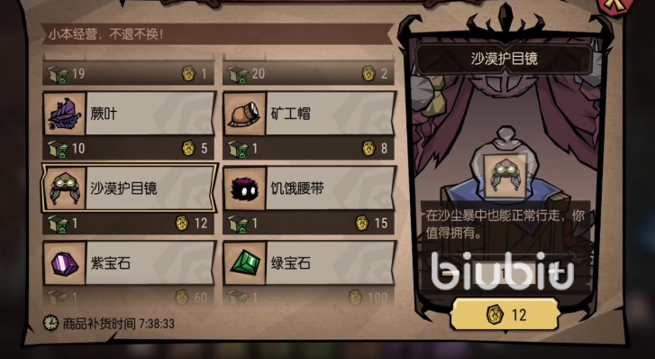 在合成完成后,就可以把沙漠护目镜放入到自己的物品栏中,在进入沙漠地区时就能去佩戴它,它将帮助玩家减少在高温环境中的热量消耗,让大家更好地适应沙漠生存。