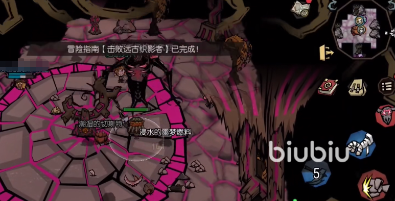 剩下就是犀牛了,玩家只能在洞穴里面慢慢找,通常都是出现在地图的最深处,前面会有个明显的迷宫地形,大家需要注意不要踩蛛网,在打完以后直接去开始挑战织影者。