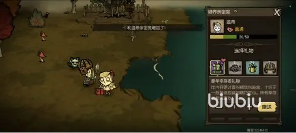 首先大家需要前往幸存者驿站,在这里邀请温蒂去冒险家的家中,温蒂就会来参观各位冒险家的家园了。接下来要做的就是给这个NPC送礼物,走到她的身边,然后就可以给她赠送礼物了,给她送“豪华幸存者礼物”就能提升很多好感度。