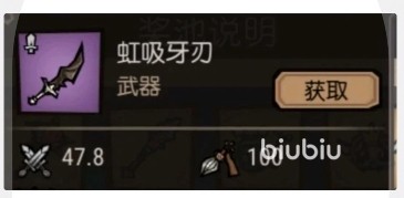 这个武器的优点的能够通过技能来回血。武器触发的是物理伤害,释放时会有概率触发“吸血”,每次吸取能够恢复4点的血量。一旦触发后下次普通伤害值会提高1.8倍。技能释放后有6秒的冷却时间。